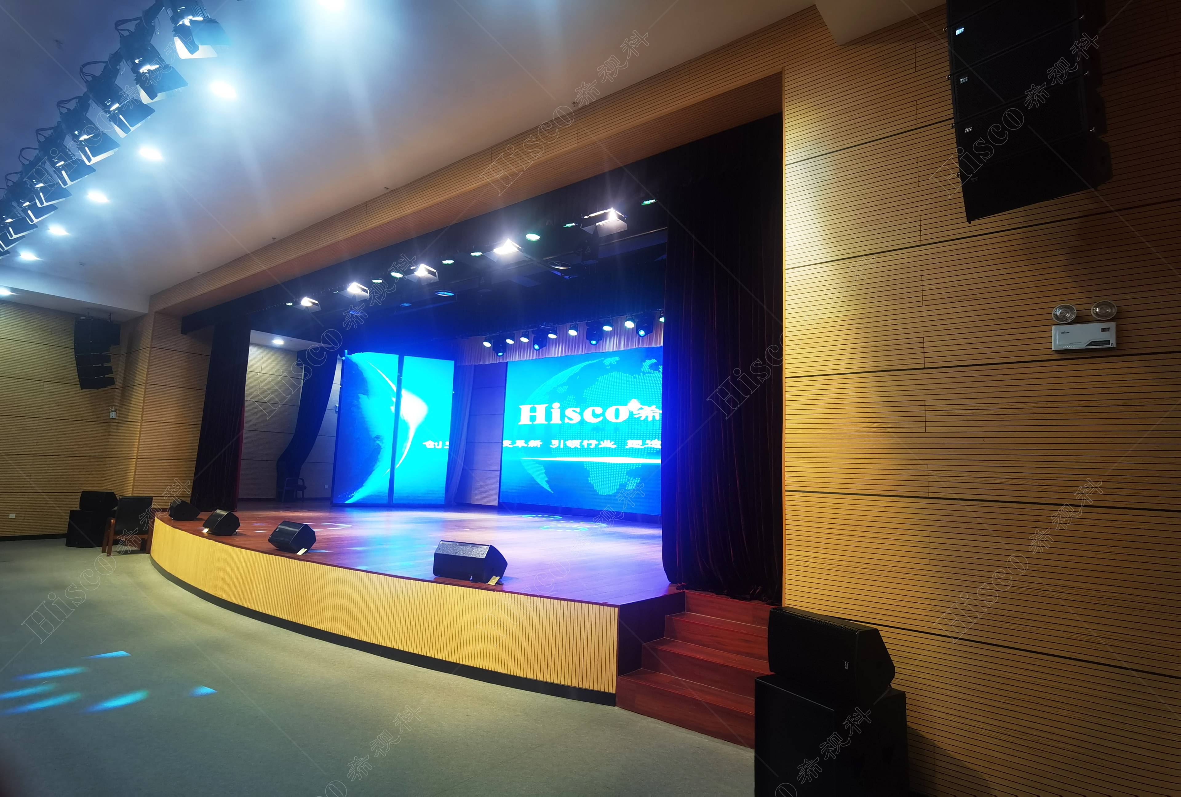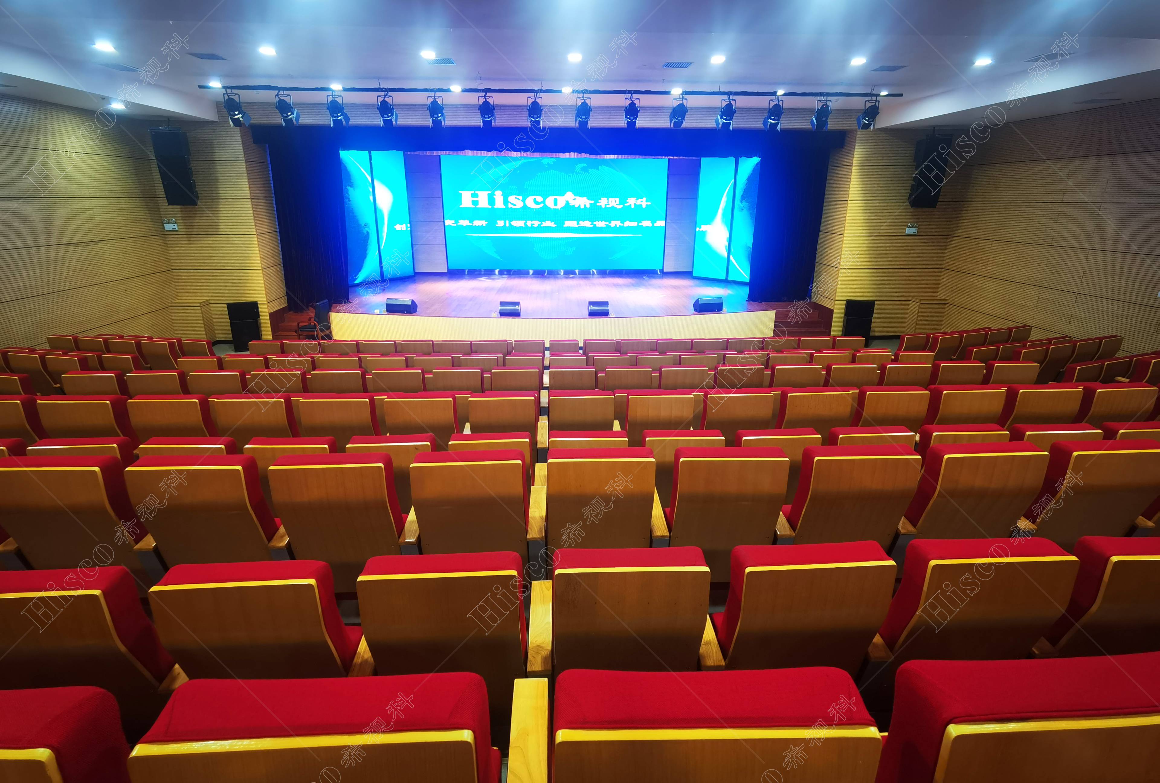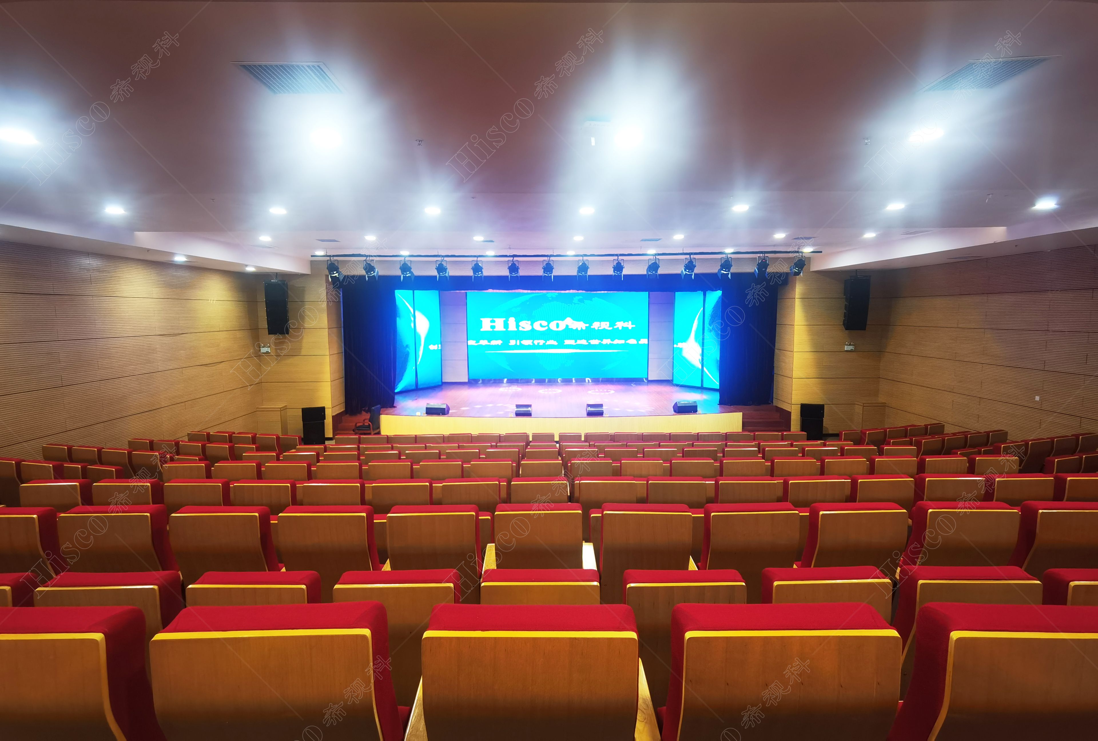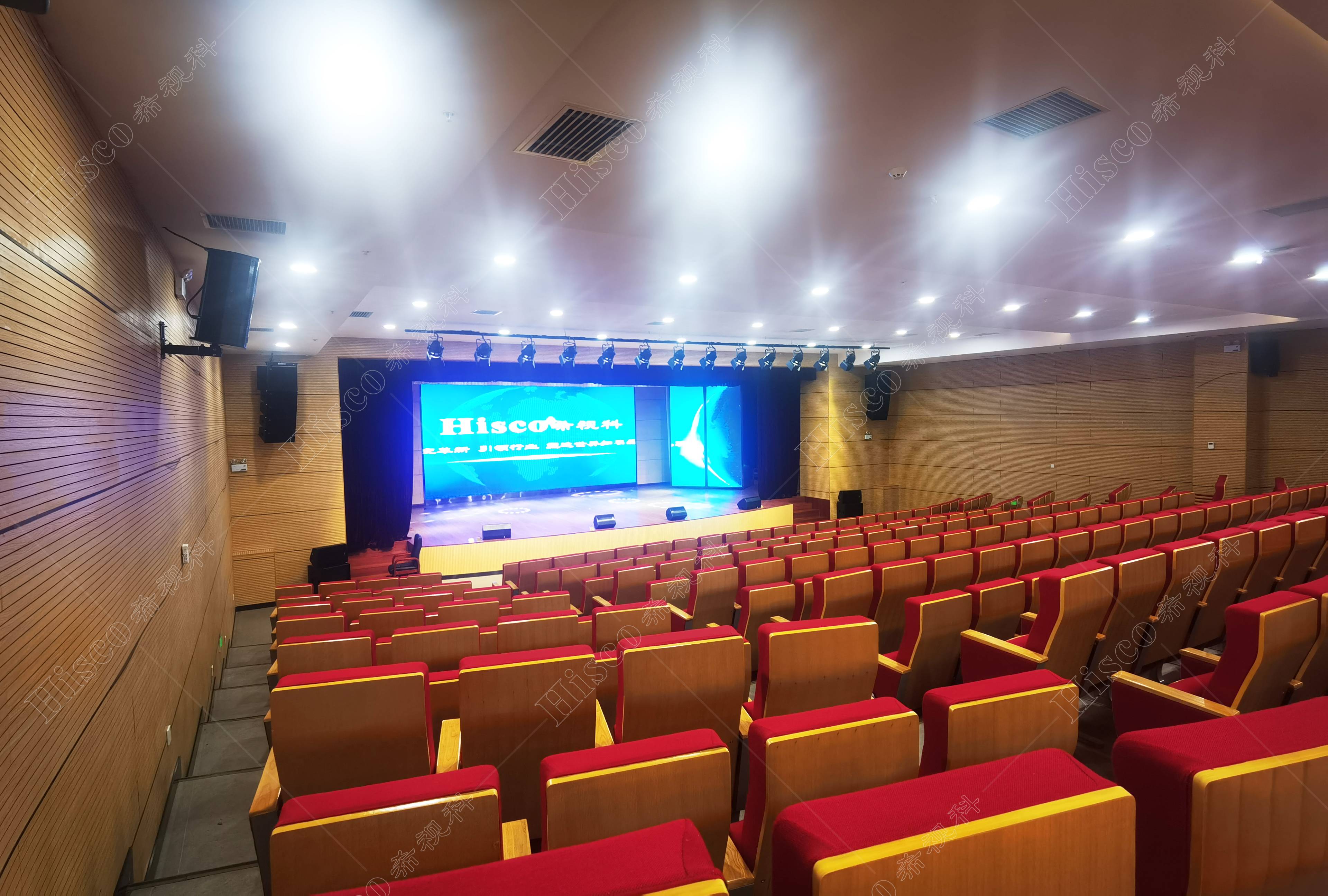 本校报告厅是一个中大型报告厅,主要为举办学校学术会议、演讲、公共大课培训及各种文艺演出,根据其建筑结构特点和使用功能及国家相关标准,根据面积和观看距离选择合适的LED大屏,展现整个舞台的宏伟大气;扩声采用集中与扩散相结合的扩声方式,开会和报告时采用单声道集中扩声还原模式,所有音源都从主席台发出,声像的平衡、方位无倾斜,保证了下面学生听到的直达声响度和均匀度达到要求,让学生听的适宜和舒服。演出时采用左右立体声空间成像模式,直达声与辅助音箱的效果声相结合表演,传达表演意境,使得演员和观众之间产生一种无声的交流。