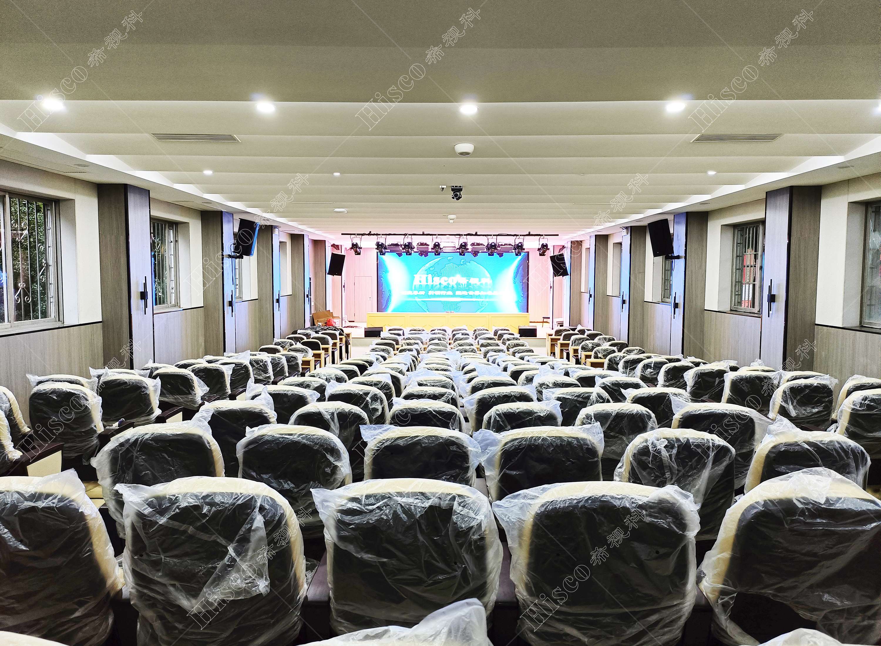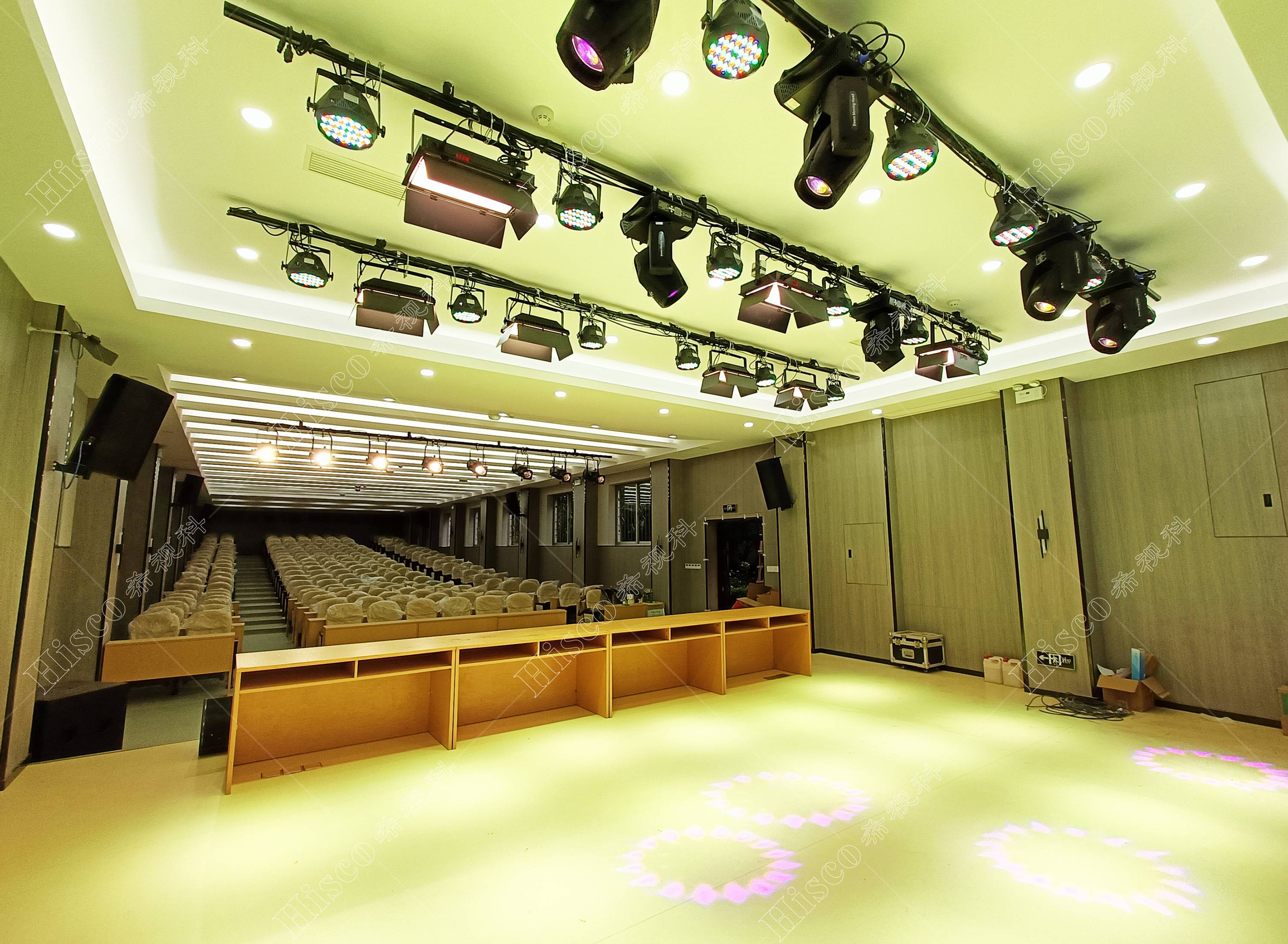 本校报告厅是一个中大型报告厅,主要为举办学校学术会议、演讲、公共大课培训及各种文艺演出,根据其建筑结构特点和使用功能及国家相关标准,根据面积和观看距离选择合适的LED大屏,展现整个舞台的宏伟大气;扩声采用集中与扩散相结合的扩声方式,开会和报告时采用单声道集中扩声还原模式,所有音源都从主席台发出,声像的平衡、方位无倾斜,保证了下面学生听到的直达声响度和均匀度达到要求,让学生听的适宜和舒服。演出时采用左右立体声空间成像模式,直达声与辅助音箱的效果声相结合表演,传达表演意境,使得演员和观众之间产生一种无声的交流。